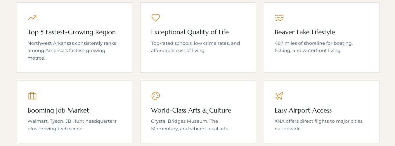 We specialize in listing and selling luxury homes, multi-generational estates, land and exclusive lakefront properties in Northwest Arkansas, with a distinct focus on the pristine, lifestyle-rich Beaver Lake region. With over 20 years in the real estate industry, consistent five-star reviews and as a Beaver Lake homeowner, founder Ruth Darling shares a rare combination of personal insight and professional expertise in every client relationship. Whether you're seeking to buy or sell a premier in town home, lakefront property, acreage or homesite, our team offers a bespoke, concierge-level experience.