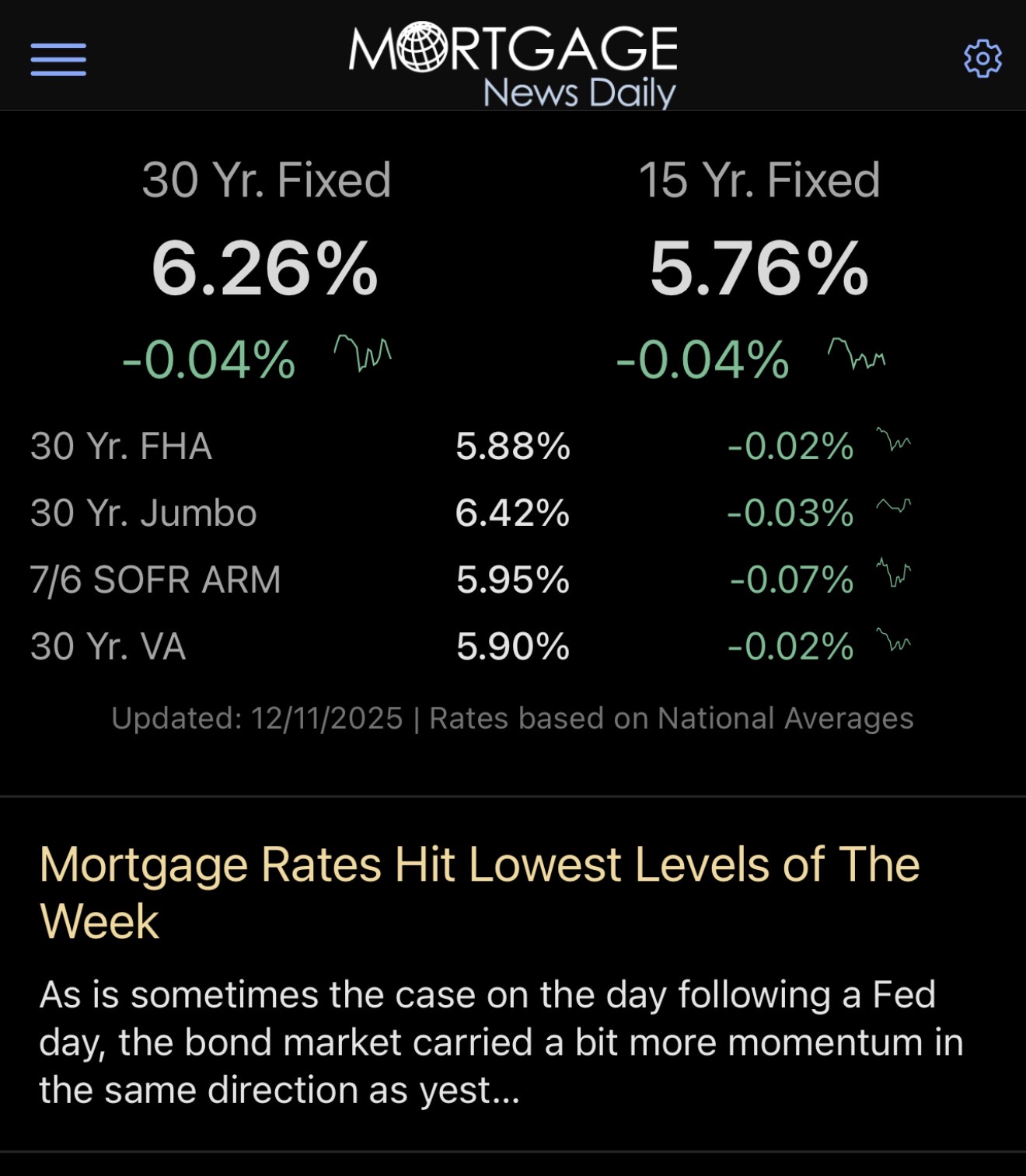 According to Mortgage News Daily, interest rates are the lowest they've been in over 1 YEAR! *Based on National Averages; Rates assume top tier scenarios